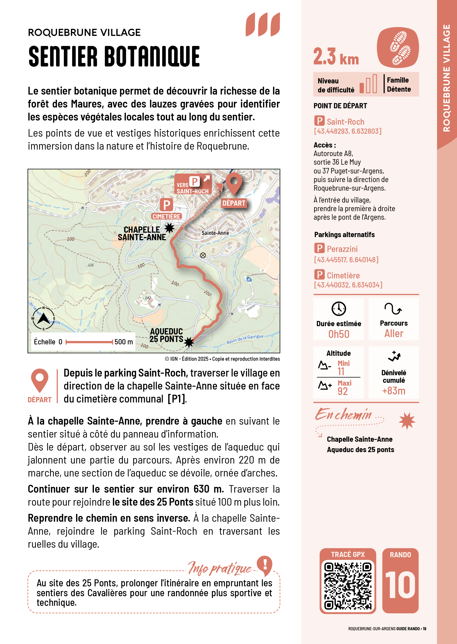 Le sentier botanique des 25 Ponts est ponctué de lauzes gravées, portant les noms des espèces végétales rencontrées. En chemin, on découvre aussi des éléments du patrimoine local.