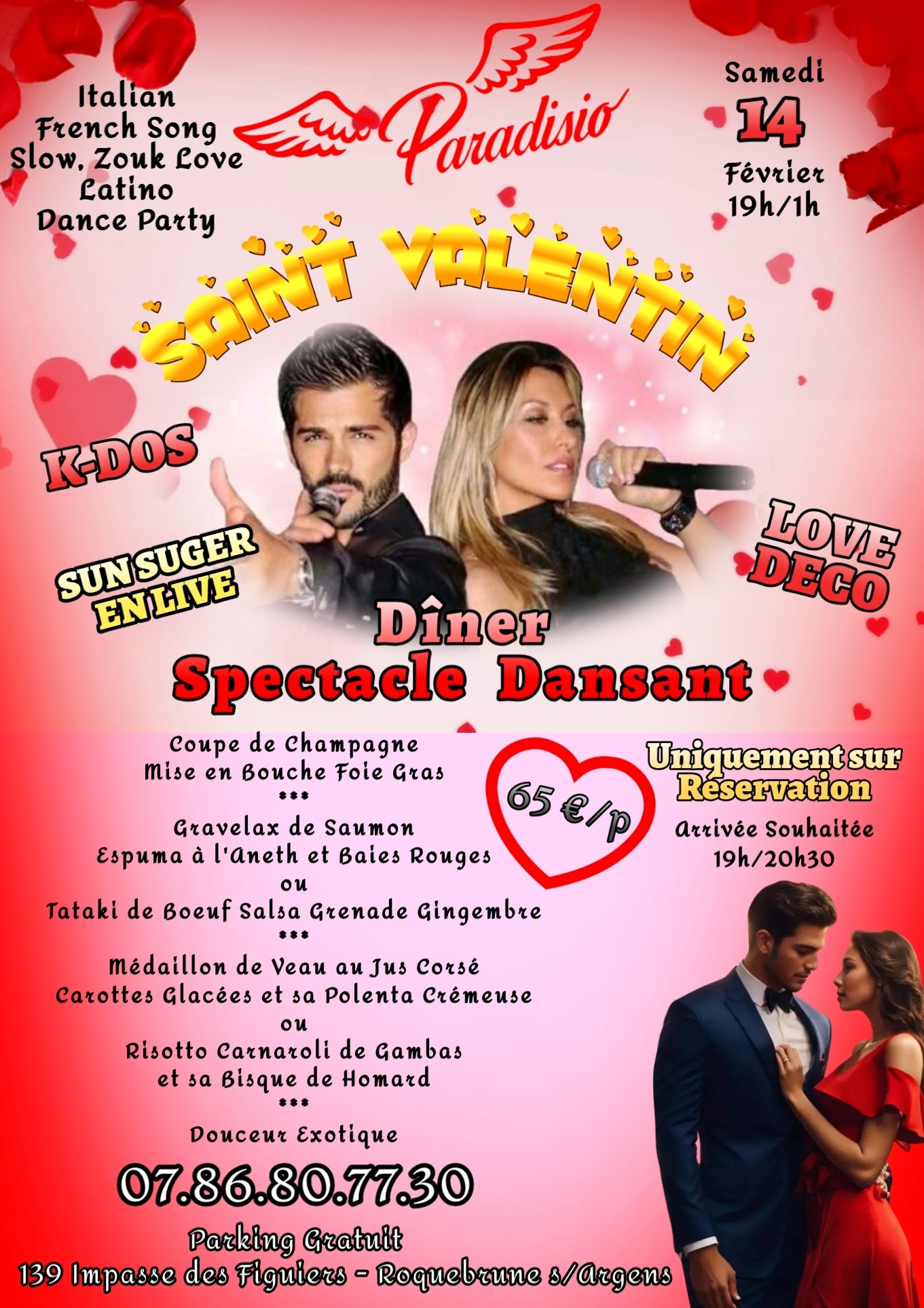 Au Paradisio, la Saint-Valentin se vit comme une vraie célébration. Dîner concert live avec les SUN SUGER, venus spécialement de Cannes et Monaco, dans une ambiance festive et une décoration grandiose. Pour ceux qui veulent mêler gastronomie et musique live, et finir la soirée sur la piste de danse.