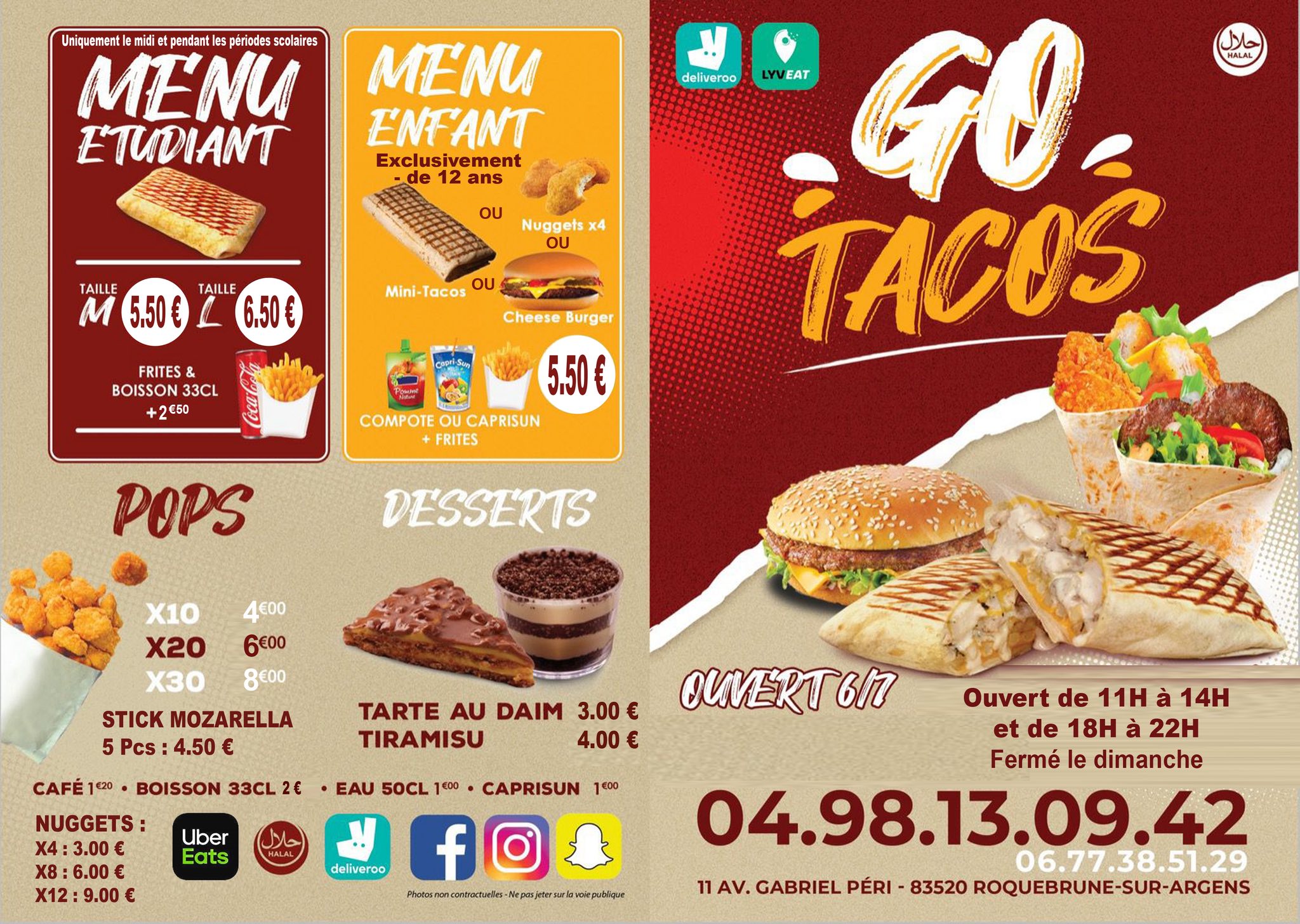 Apprécié pour son bon rapport qualité/prix et son accueil convivial, Go’ Tacos séduit aussi bien les habitants que les visiteurs en quête d’un repas simple et efficace.