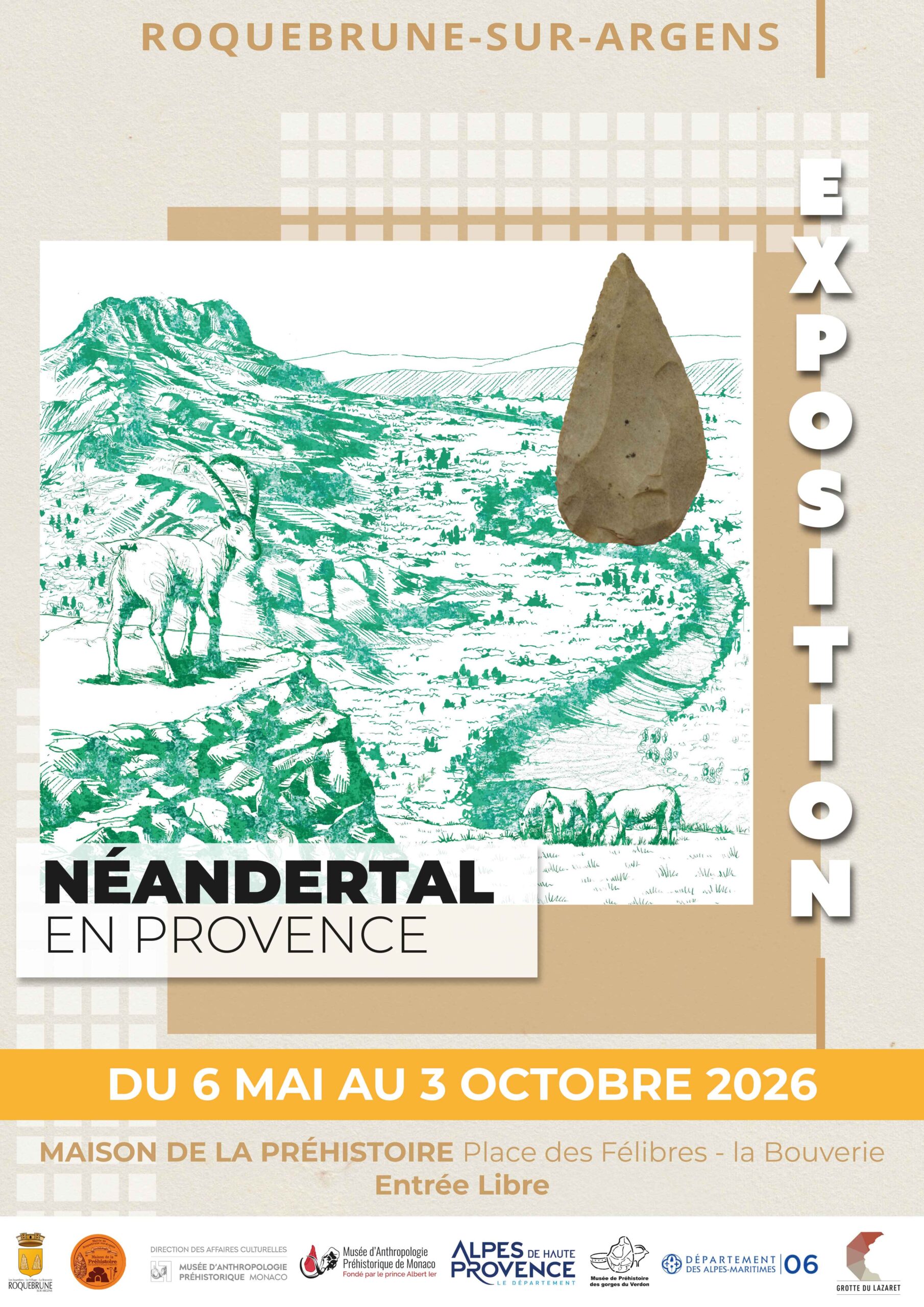 Cette exposition unique bénéficie de prêts exceptionnels du Musée d’anthropologie préhistorique de Monaco, du Musée de Préhistoire des gorges du Verdon et de la Grotte du Lazaret, offrant aux visiteurs un panorama exceptionnel du patrimoine préhistorique régional. Des objets archéologiques, associés à l’étude fine de leur contexte de découverte, permettent ainsi d’illustrer la vie de ces humains fascinants.